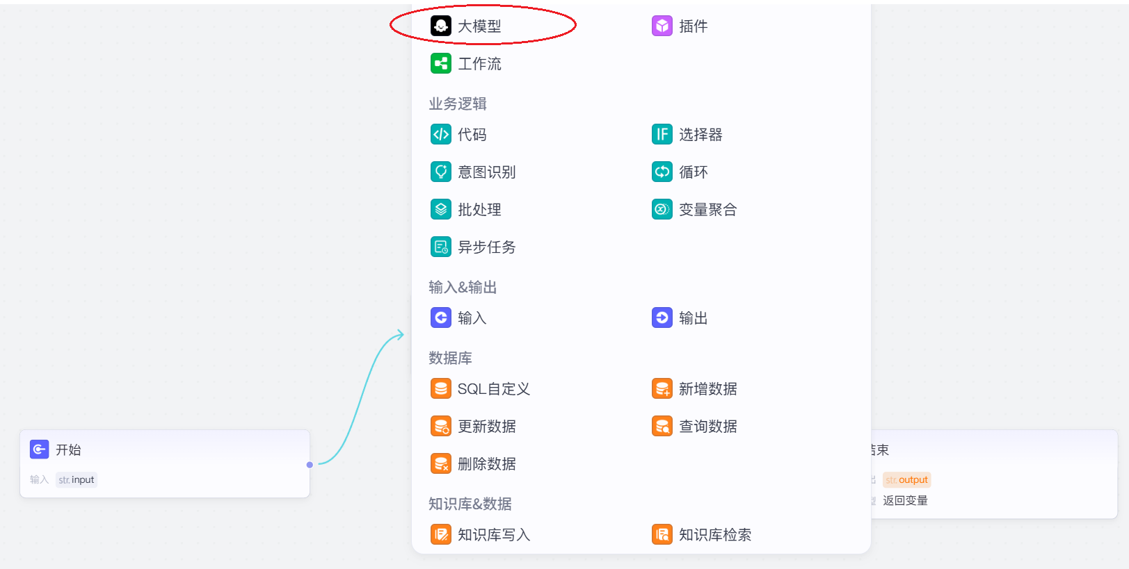 是完成特定目标,而设计的一系列结构化、自动化(或半自动化)的步骤和规则。节点是工作流的最小拆分单位,它的核心包括开始节点、结束节点、大模型节点、插件节点、工作流节点,是系列指令的集合,能够处理复杂的场景。