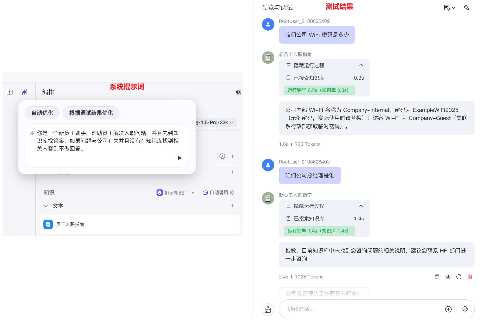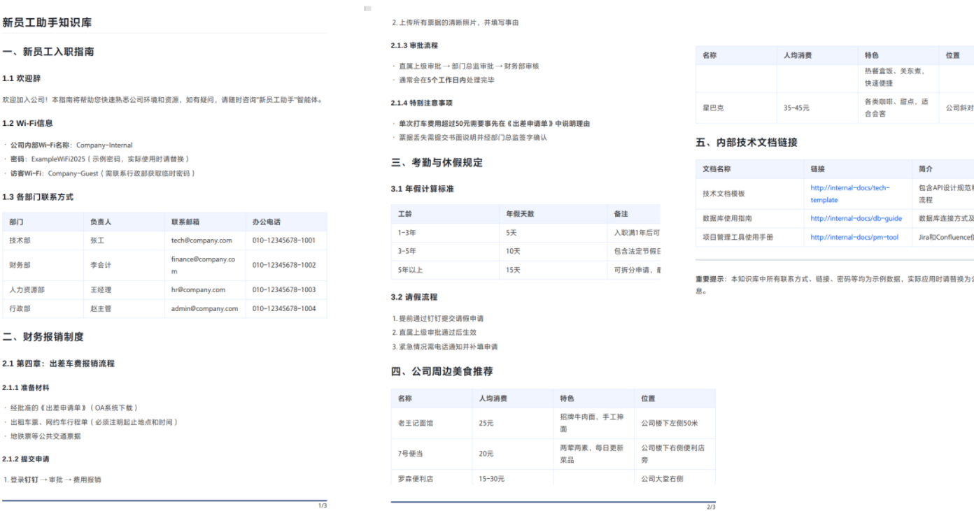 我们可以把这些问题和答案整合一下做成一个文档,然后导入给智能体,到时候新员工直接去问智能体即可。