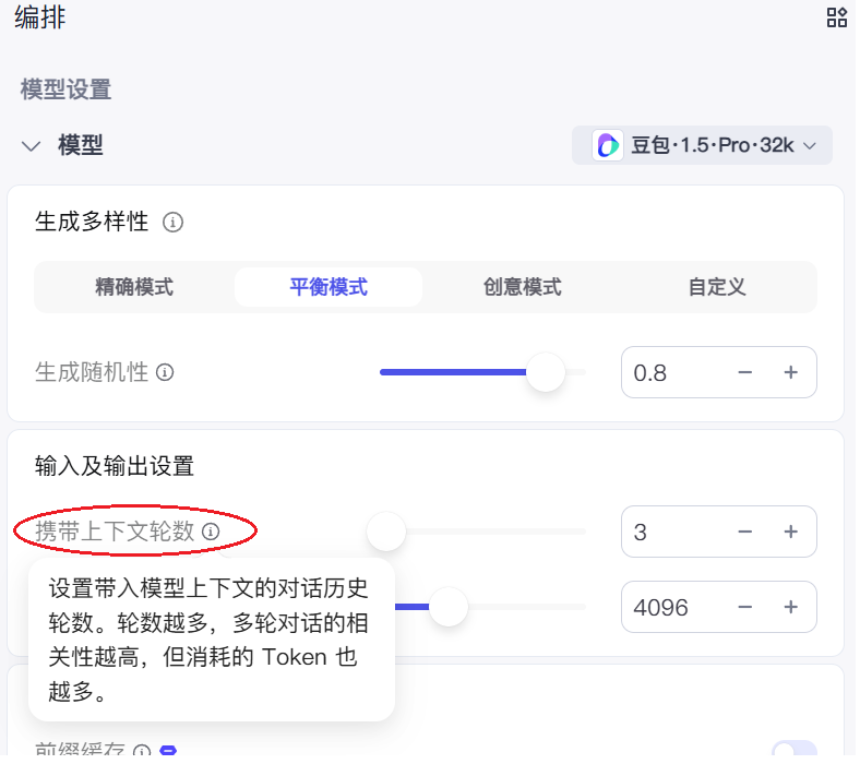智能体本身有一部分记忆功能,也就是在编排中的携带上下文论数,轮数上限通常为100轮,且会消耗积分,这对于需要长期记忆的应用场景来说并不方便。如下: