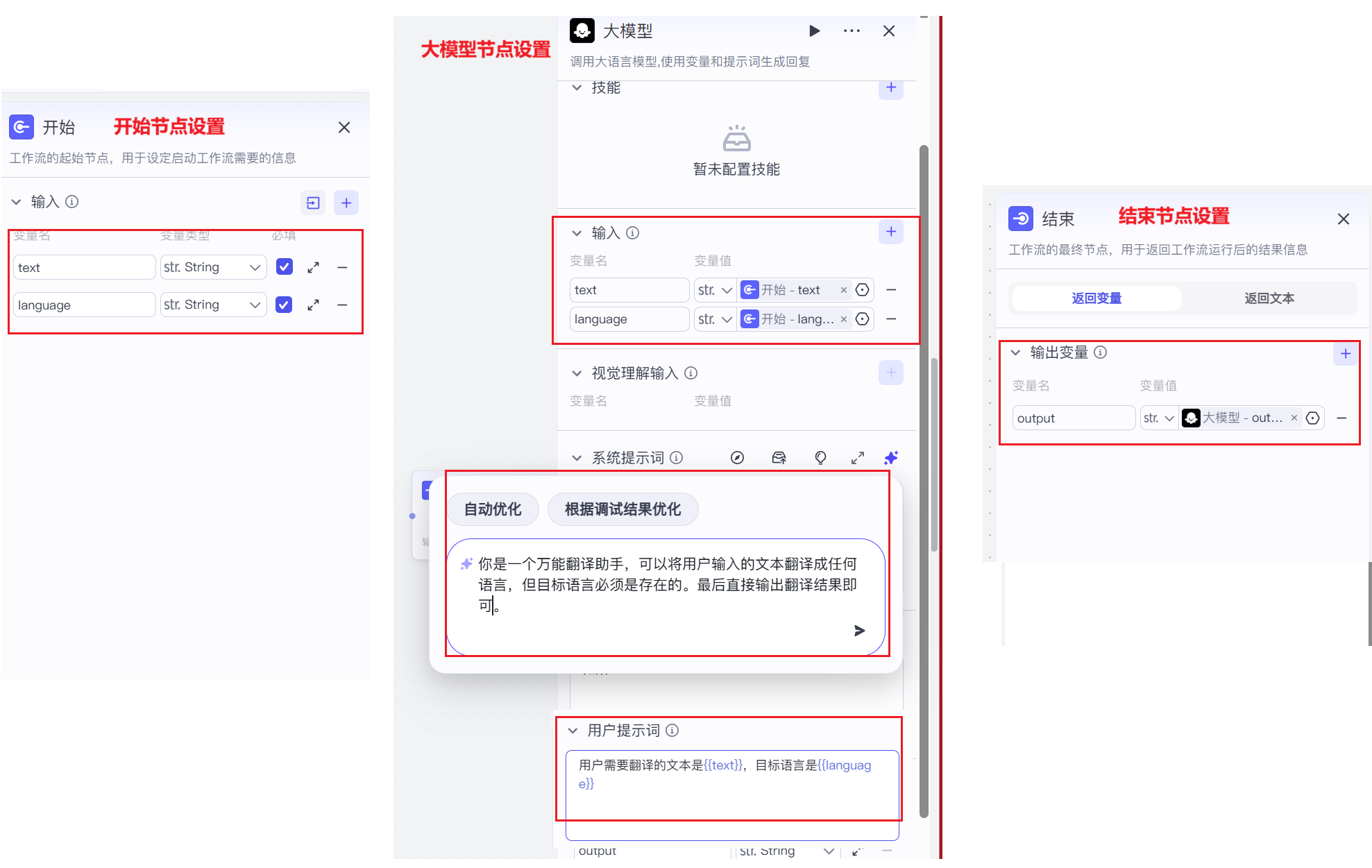 - 系统提示词:在创建智能体式由开发者设定,告诉大模型这个智能体是用来做什么的,和设定一些技能和规则等等。