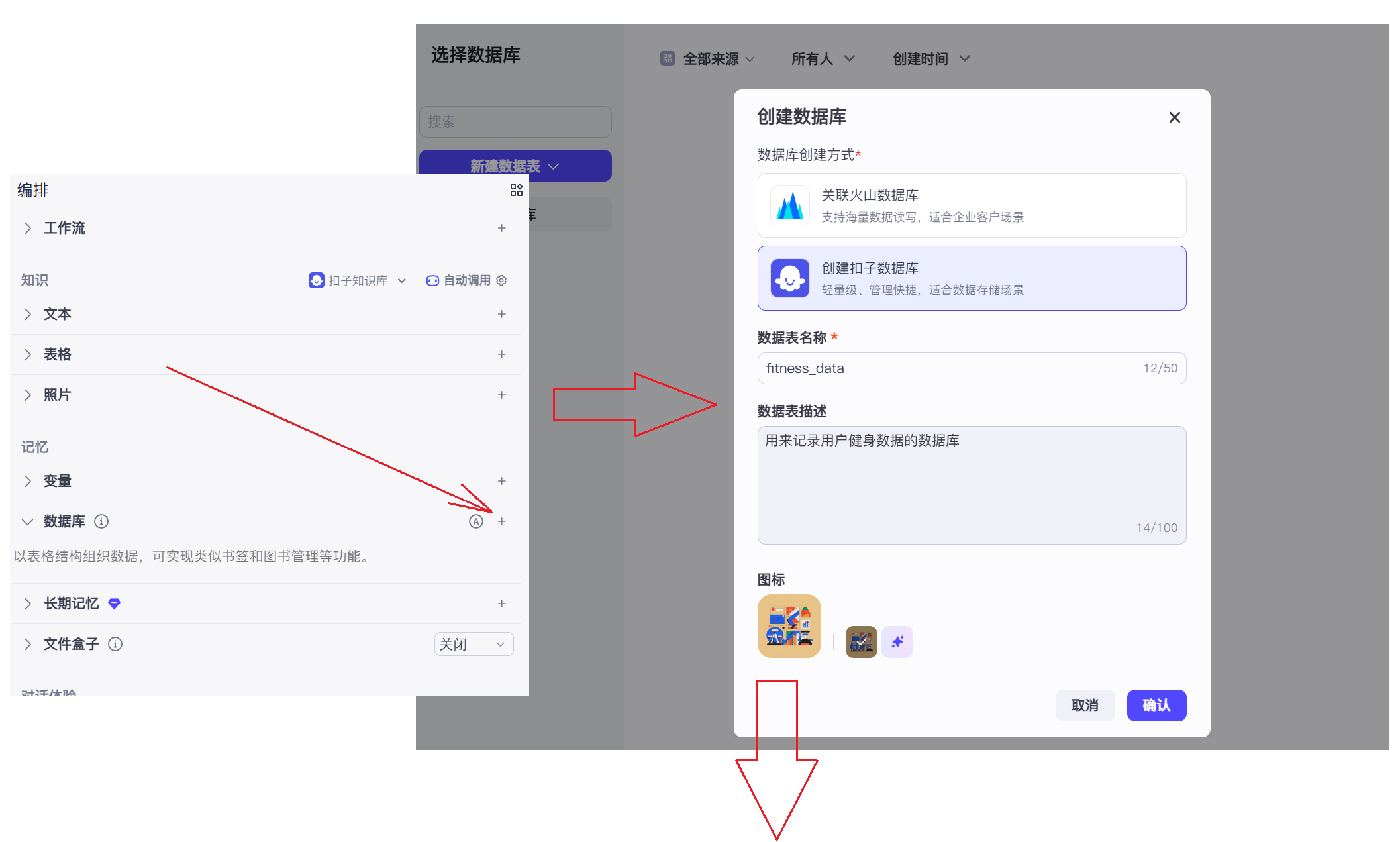 Coze数据库是字节跳动扣⼦平台提供的结构化数据存储服务,采⽤类NoSQL的⽂档模型,⽀持通过⾃然语⾔或SQL语句进⾏数据的增删改查操作。作为智能体的"⻓期记忆"组件,它能够持久化存储⽤户交互数据、业务配置信息和应⽤状态,是构建复杂AI应⽤的核⼼基础设施。