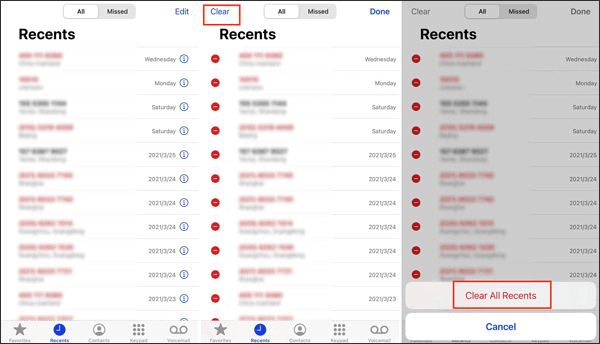1.2 如何使用编辑选项删除 iPhone 中的最近通话