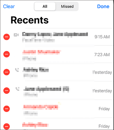 步骤5. 您将在每个通话记录条目旁边看到红色的减号 (-)。点击要删除的通话旁边的减号 (-)。