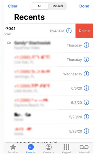 1.1 如何使用向左滑动选项删除 iPhone 上的通话记录