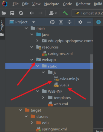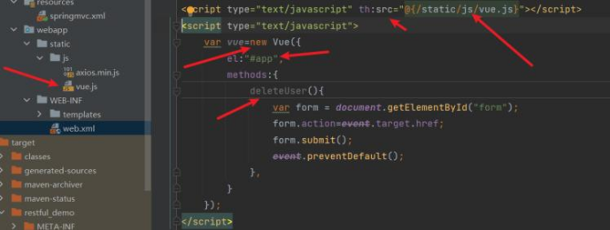 c.在html页面中导入vue.js,并创建一个vue实例挂载到上述div: