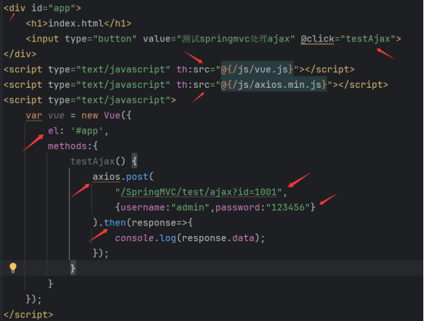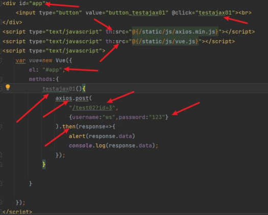 2)页面中写一按钮,挂载到vue实例,用以处理按钮click事件