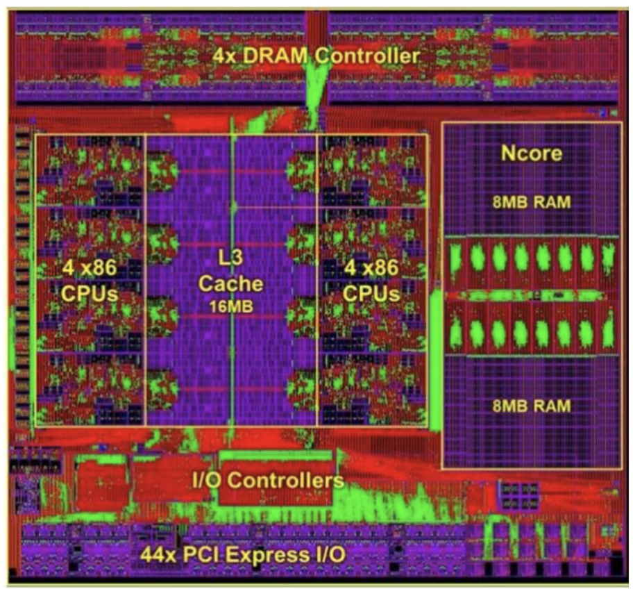 CPU芯片:大致张下图这样,这是威盛 Centaur x86 AI 处理器,也是世界上第一款内置 AI 协处理器的 x86 架构芯片。