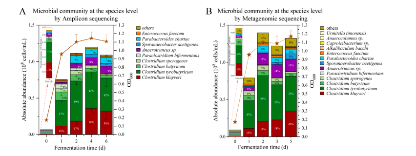 图1,2 菌群的发酵动力学和种水平的物种变化