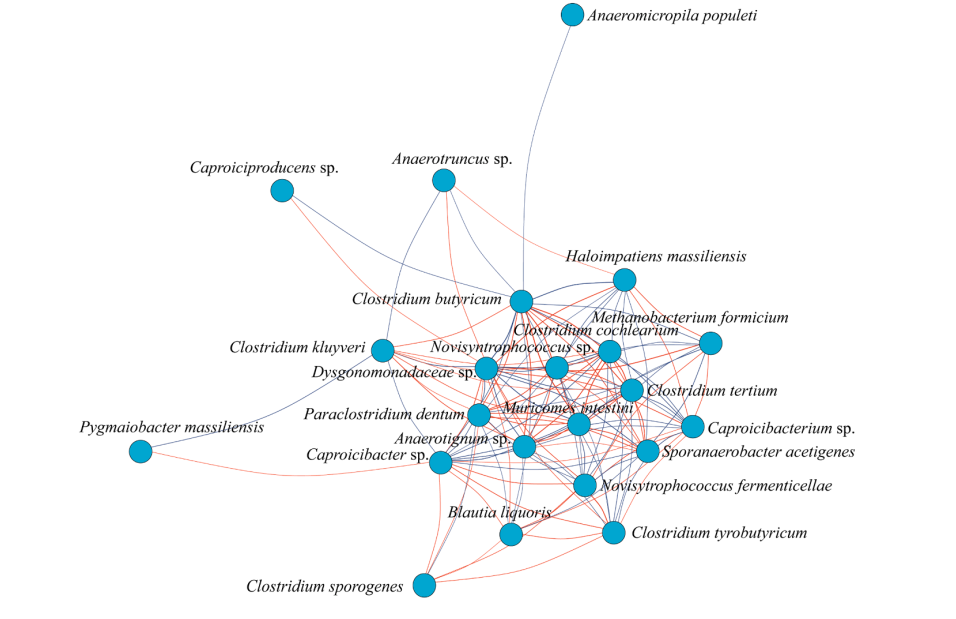 图6,7 优势类群间相关性网络和C. kluyveri与C. butyricum,C. tyrobutyricum代谢途径