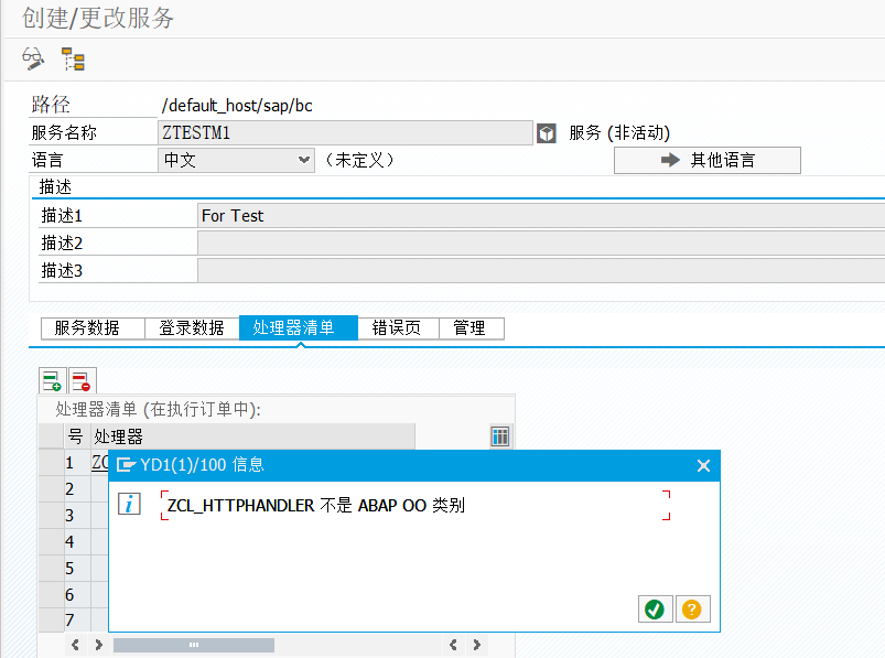 注意:只有在处理器类创建并激活后,SICF服务才能成功激活。