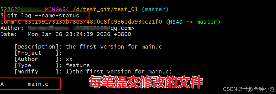 git log --name-status : 查看提交记录,同时显示每笔提交修改的文件名称;
