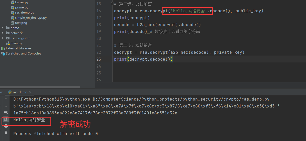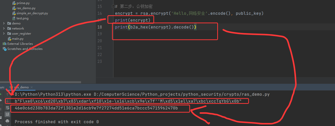 encrypt = rsa.encrypt('Hello,网络安全'.encode(), public_key)