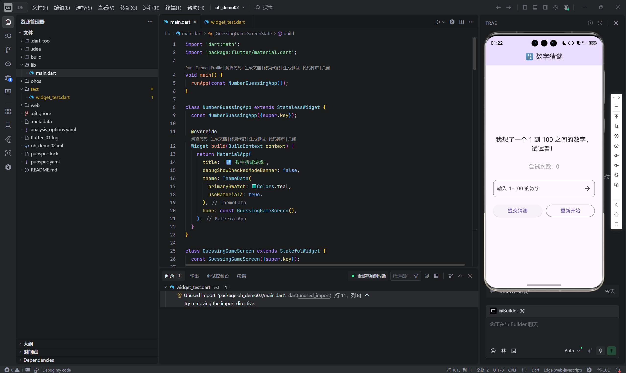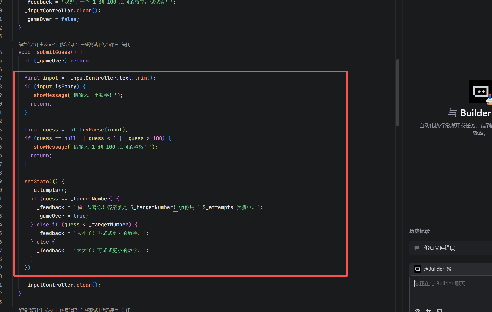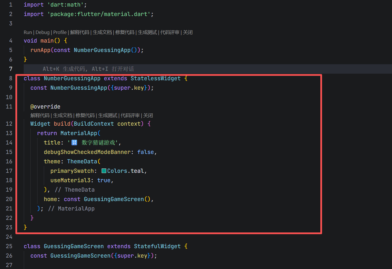 这个数字猜谜游戏仅有约 150 行 Dart 代码,却完整覆盖了 Flutter 应用开发的核心要素: