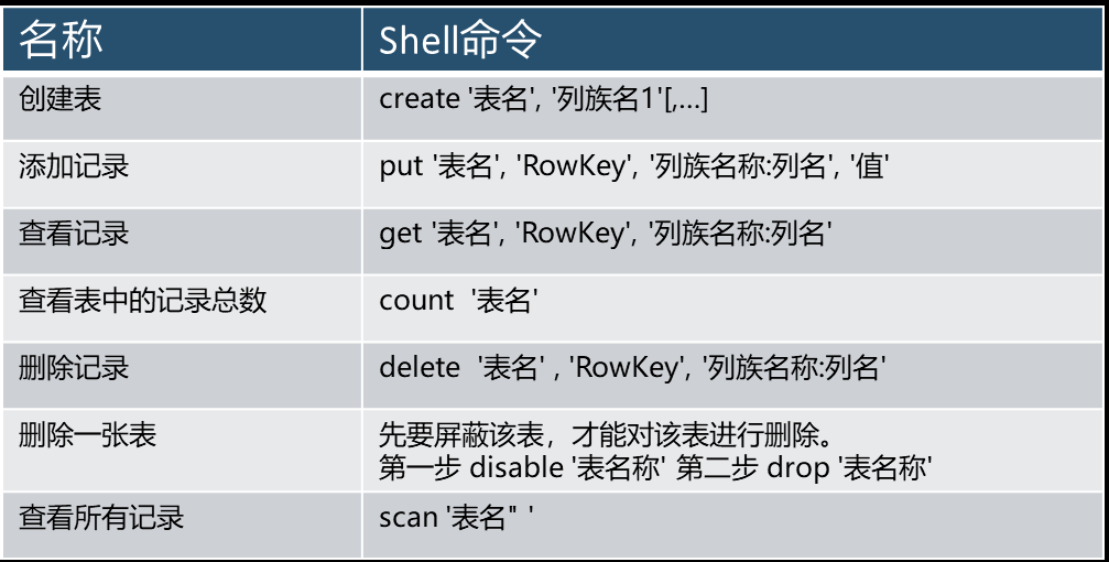 如果要删除表或更改表的设置,需要先使用 disable 命令禁用该表,之后也可以使用enable 命令重新使用该表。
