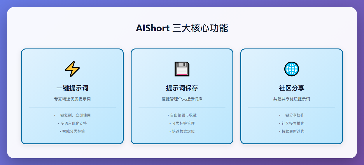 AIShort提供了三大核心功能,让AI对话更高效: