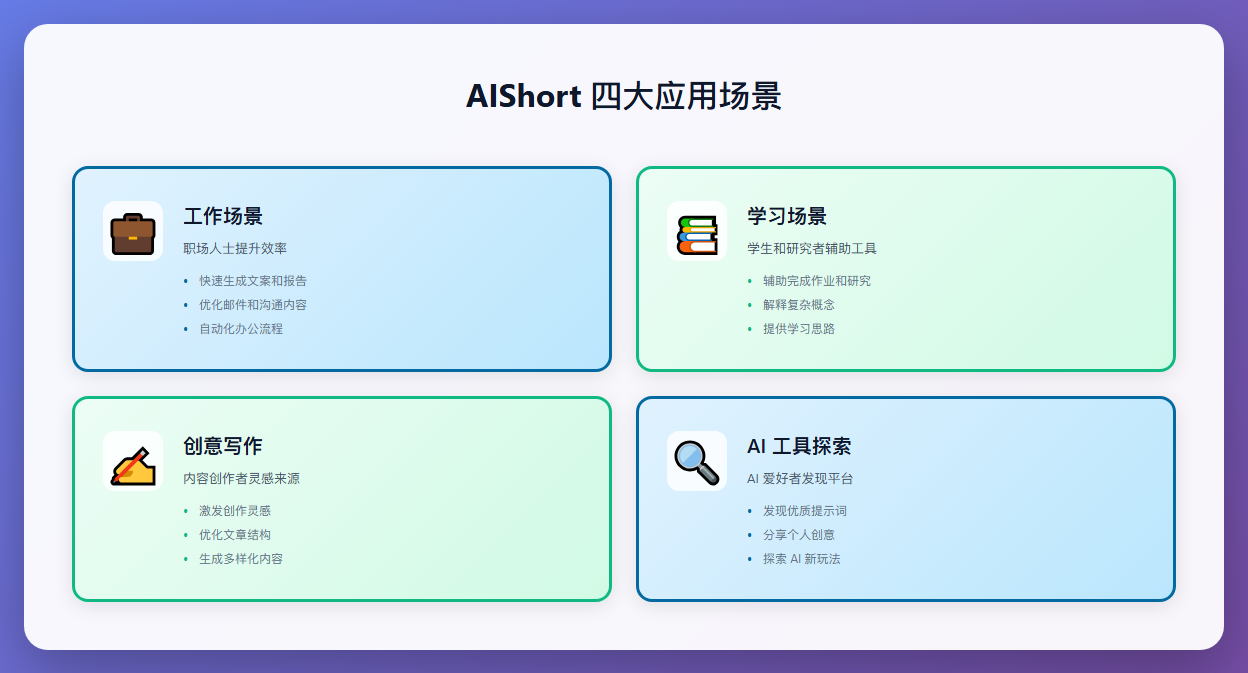 无论是职场人士需要快速生成文案,学生群体辅助学习研究,还是内容创作者寻找灵感,AIShort都能提供实用的支持。如果需要更高的定制性或内网部署,通过Docker容器化部署专属平台既简单又稳定,还便于后续的维护和扩展。