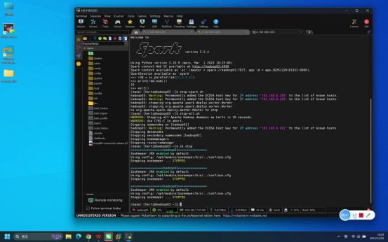 - 停止Spark集群:在hadoop01节点终端执行命令:stop-spark.sh(一键停止所有节点的Spark服务)