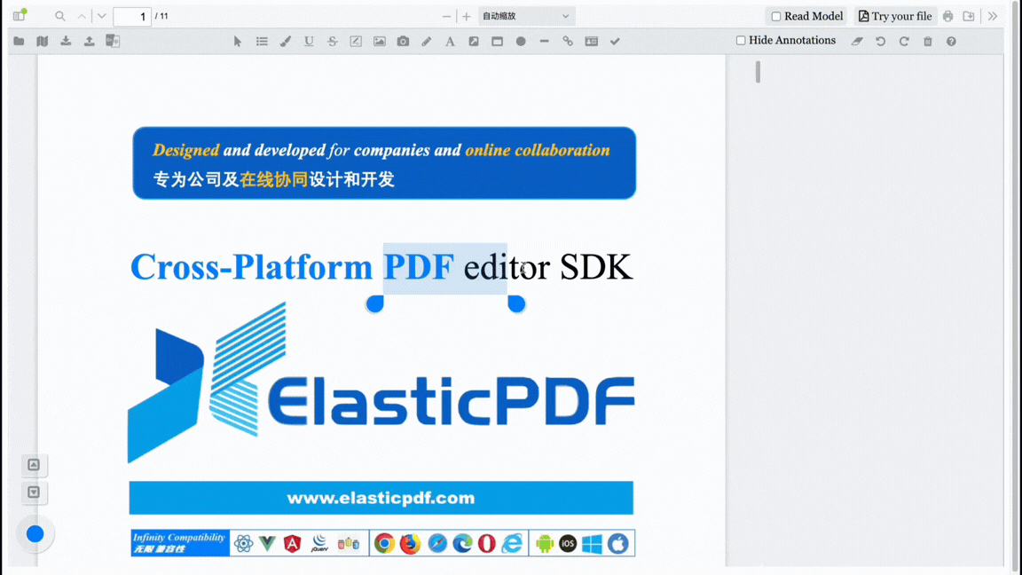 这使 ElasticPDF 同时适用于 审阅、标注、协作类 PDF 场景。