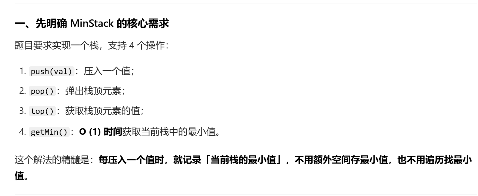 解法:栈里存的都是二元组( x,y)x是当前存入栈的元素,y是当前栈最小元素,这样既可以O(1)弹出当前元素,也可以O(1)弹出栈内最小元素