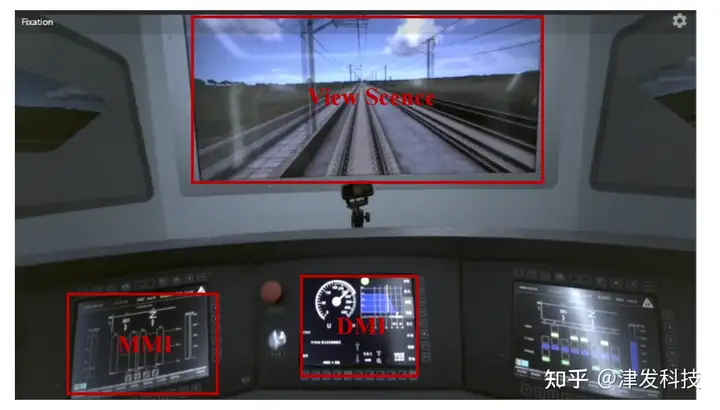 眼动特征分析(Eye Movement Patterns)设置了三个感兴趣区域(AOIs):前方视景(View Scene);人机界面(MMI);驾驶仪表界面(DMI)。