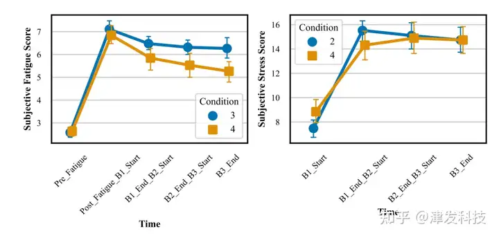 为验证疲劳和压力诱导方法的有效性,研究在实验关键节点处(见图 3)收集了主观评分数据。