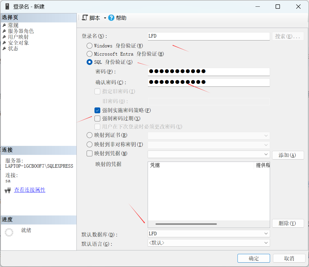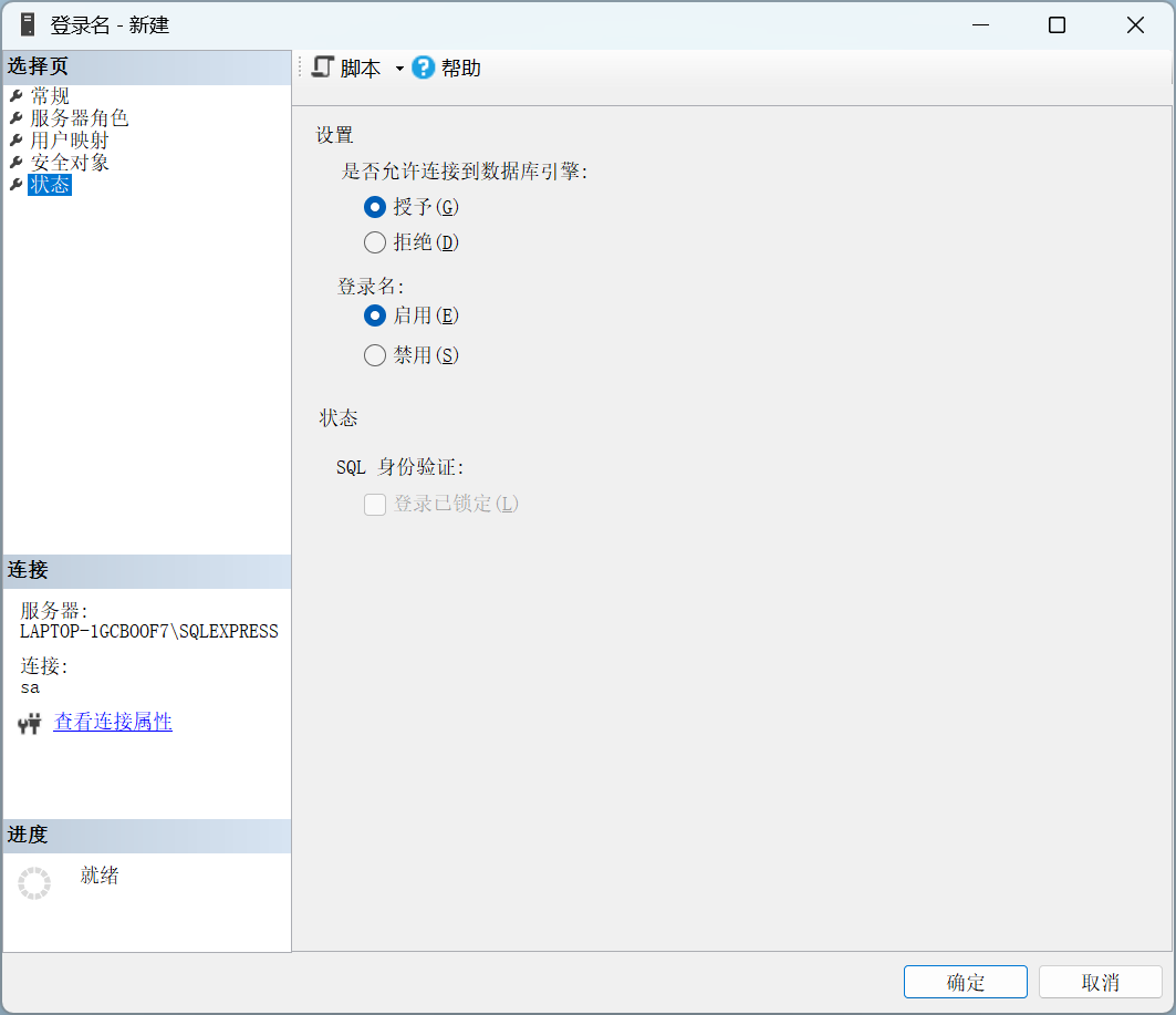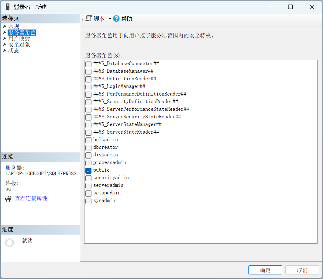 安全性-登录名-新建登录名