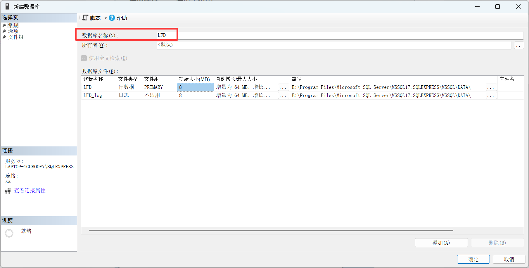 新建LFD数据库