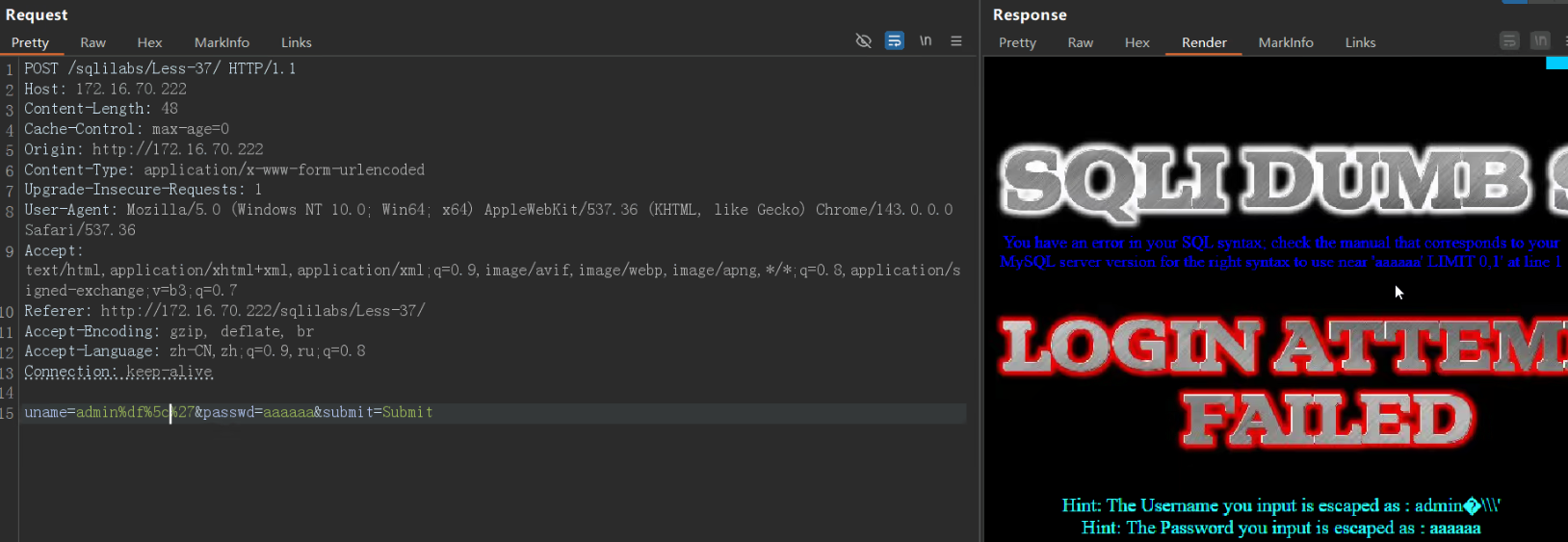 - [二、Less-37 POST宽字节](#二、Less-37 POST宽字节)