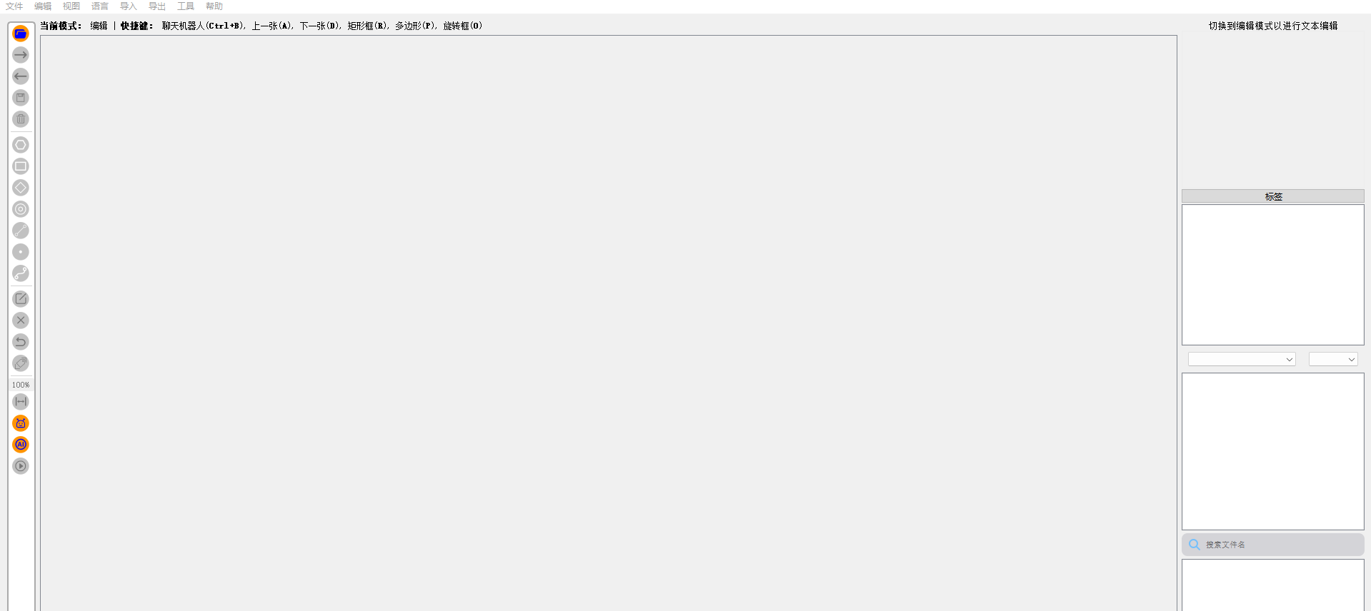 左侧面板:文件管理、手动标注工具、标签编辑、自动标注模型区