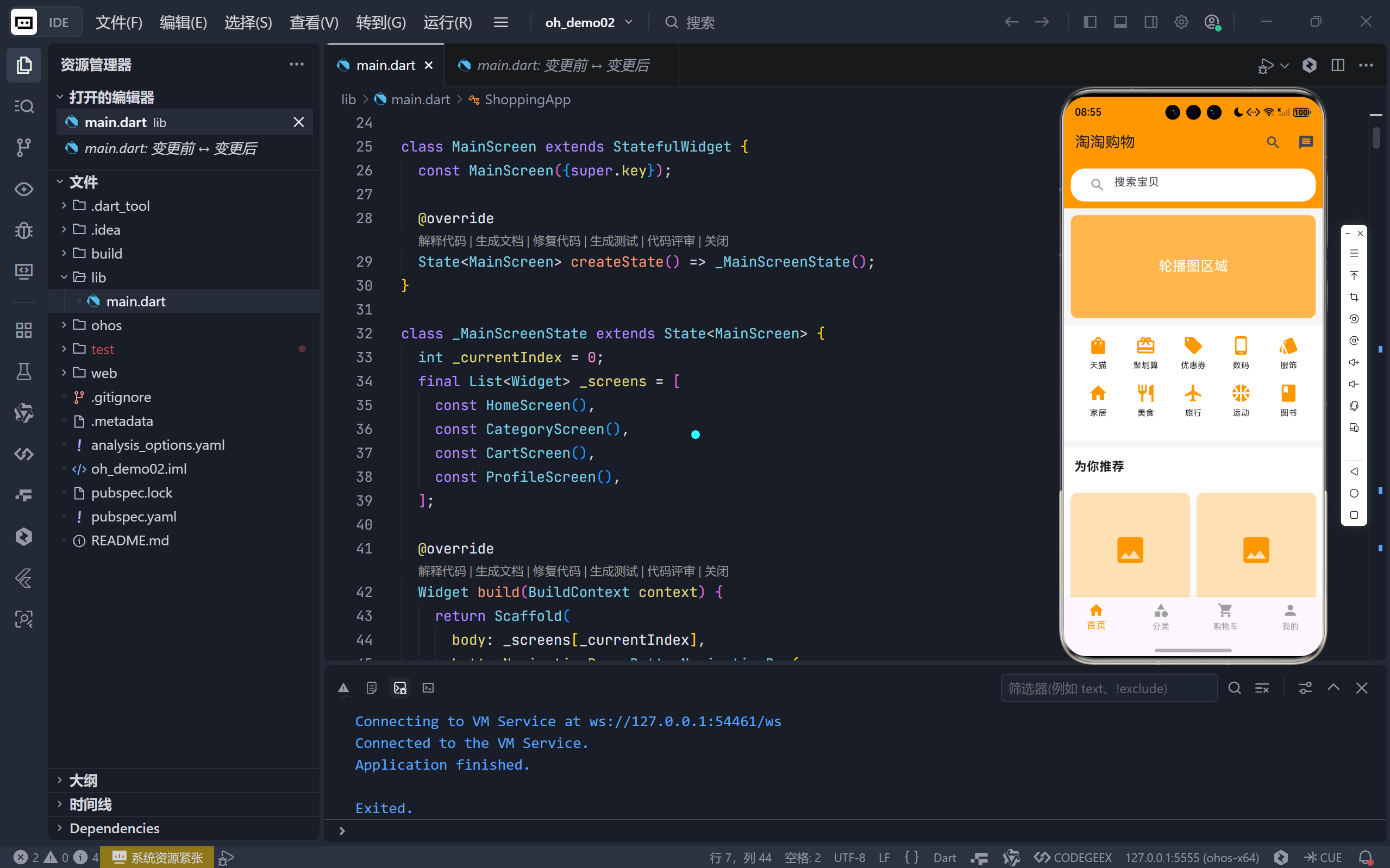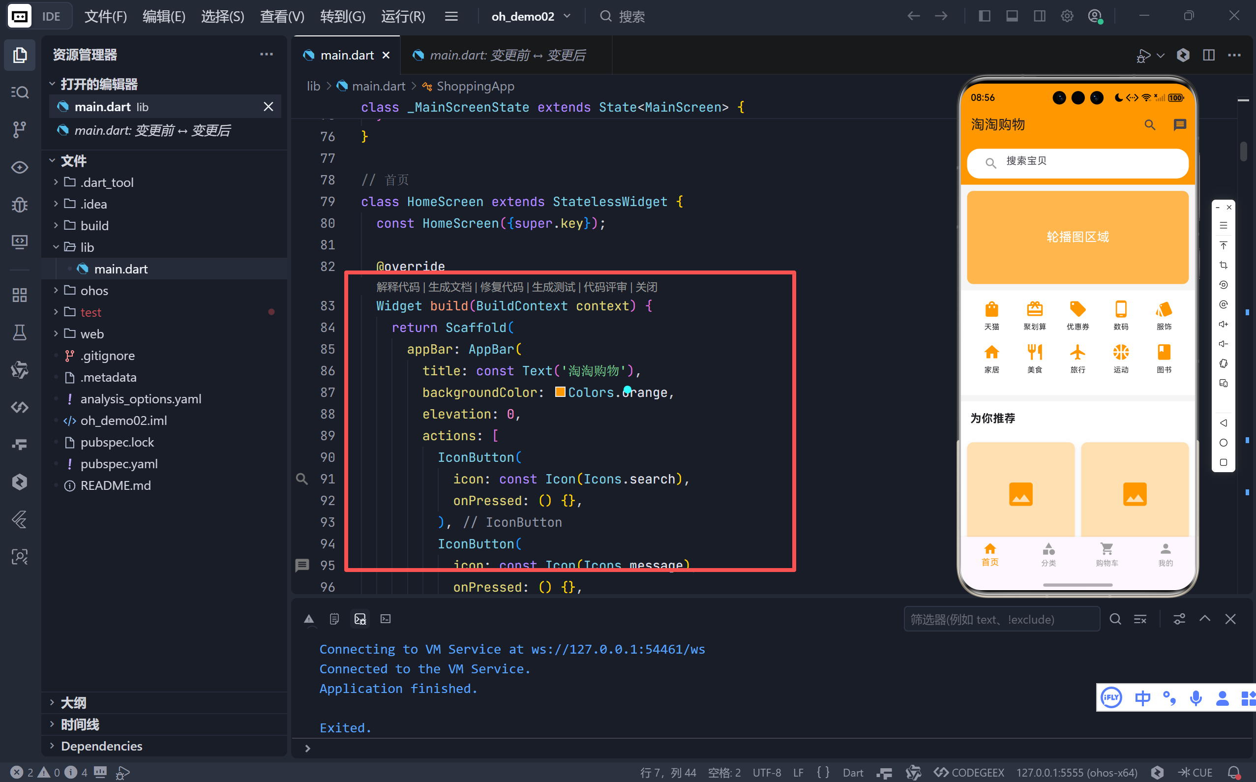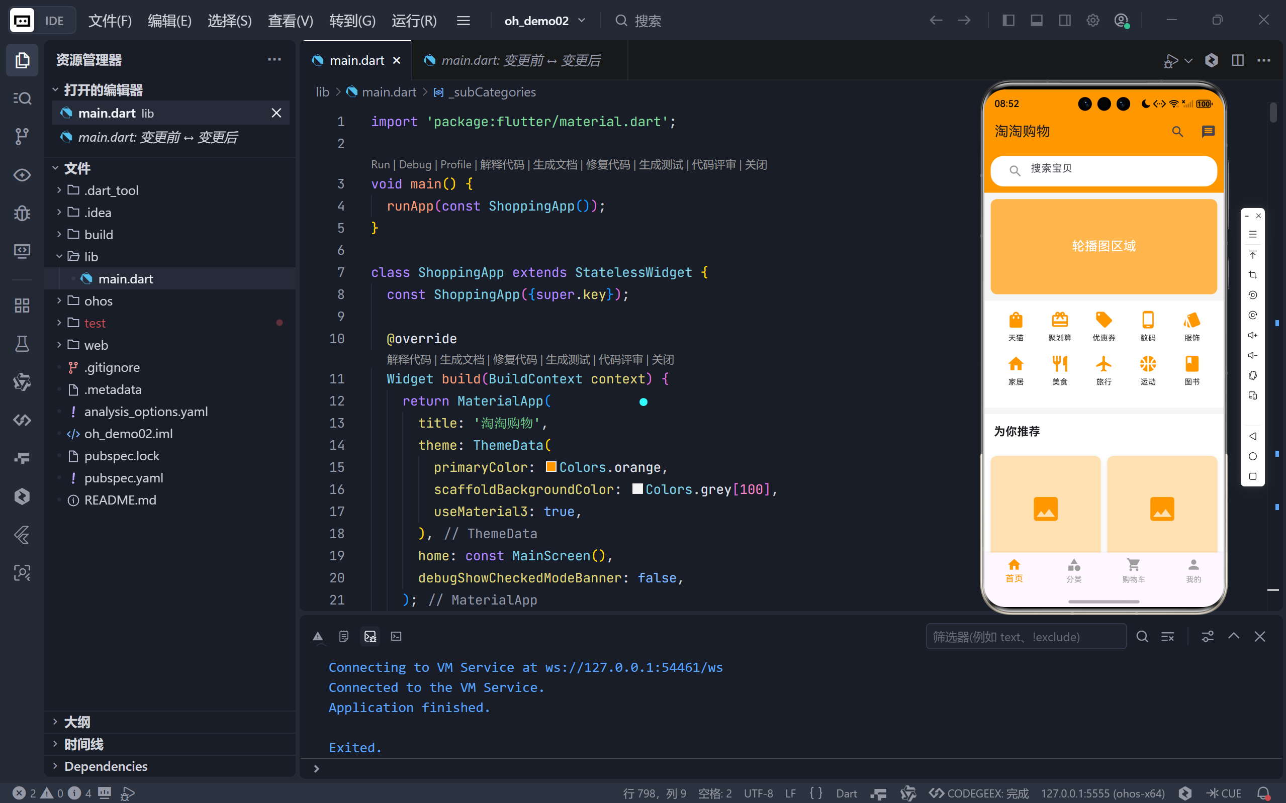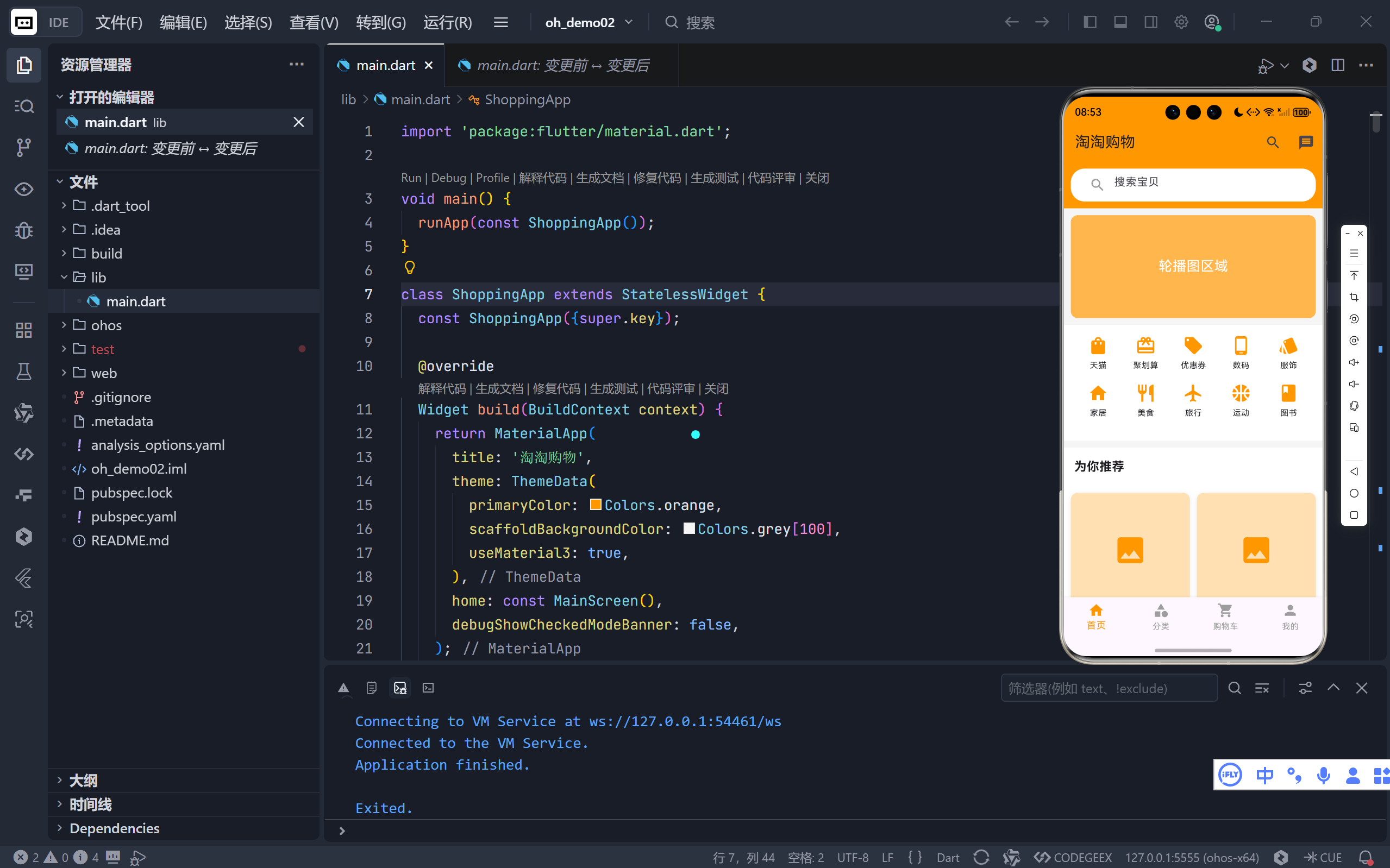 进入项目后,打开lib/main.dart,这是我们应用的唯一入口。为了让我们的APP拥有统一的品牌调性,我们需要配置全局主题。观察主流购物APP,橙色系(如淘宝、京东)因其活力、热情和促销感而被广泛采用。我们也将沿用这一经典配色。