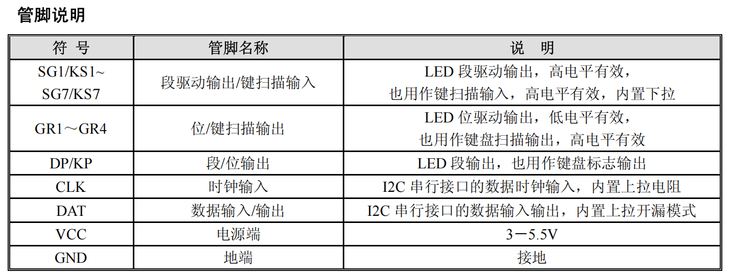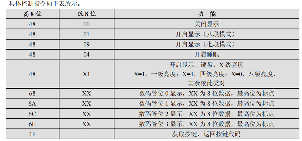 显示模式:8 段×4 位 或者 7段×4位