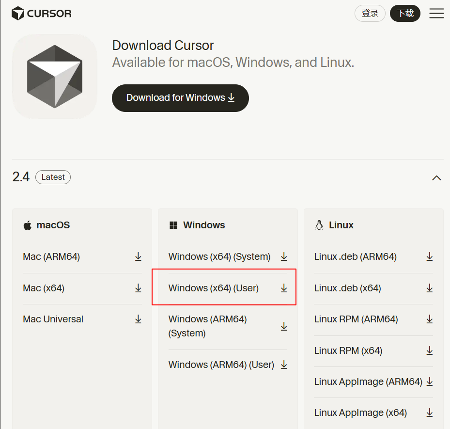 代码:(如果一开始的选错windows也是可以在这个文件中直接修改),然后保存重新打开Cursor。