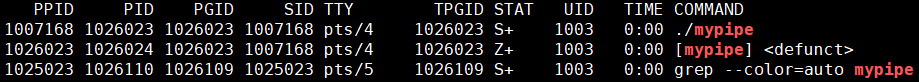 while :; do ps axj | head -1 && ps axj |grep mypipe;sleep 1;done