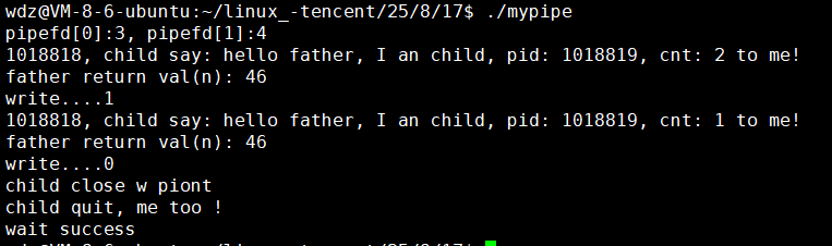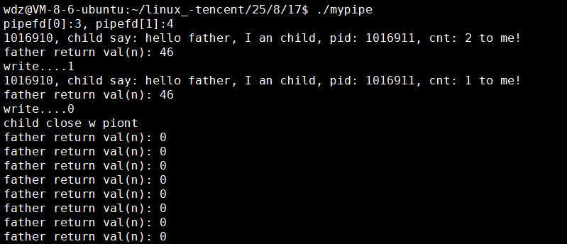 //close(pipefd[1]);写不写都行,进程退出文件就会被关闭