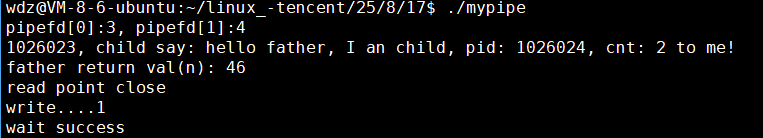 cout << "pipefd[0]:" << pipefd[0] << ", pipefd[1]:" << pipefd[1] << endl;