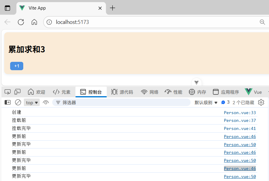 2. 挂载指的是将 .vue 文件编译后的 DOM 结构挂载到页面,此时页面内容可见。(触发1次)
