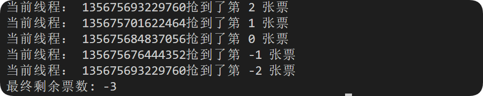 cout << "当前线程: " << pthread_self() << " 抢到了第 " << tickets << " 张票\n";