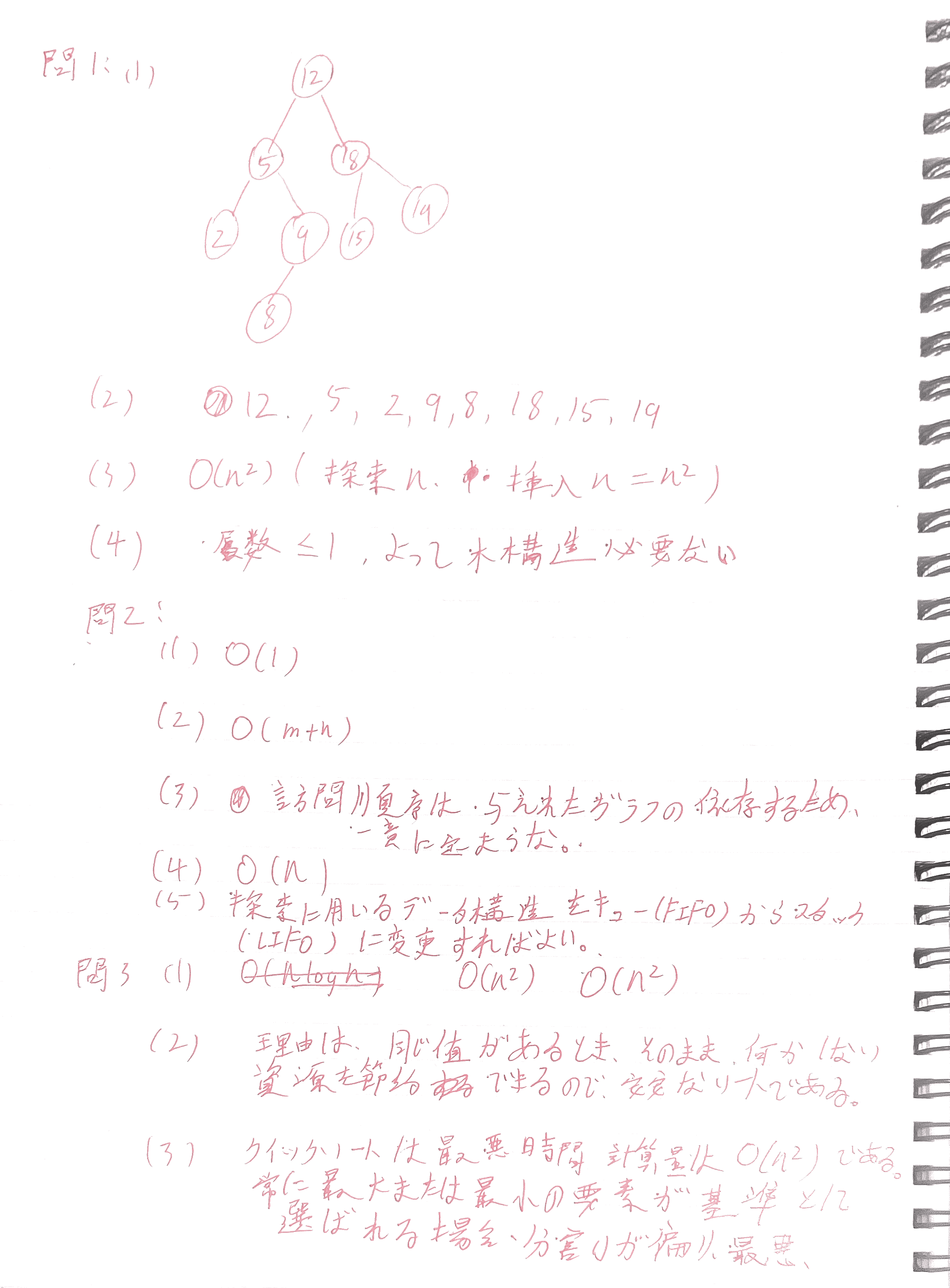 (|V|=n, |E|=m) を用いてオーダー表記で答えよ。