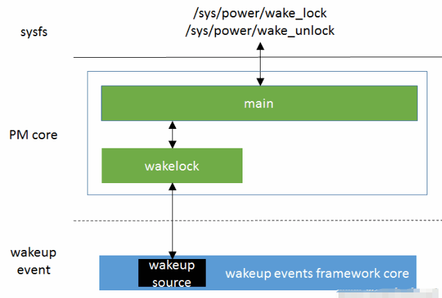 在PM core中有一个wakelock模块(kernel/power/wakelock.c),该模块依赖wakeup events framework提供的wakeup source机制,实现用户空间的wakeup source(就是wakelocks),并通过PM core main模块,向用户空间提供两个同名的sysfs文件,wake_lock和wake_unlock。