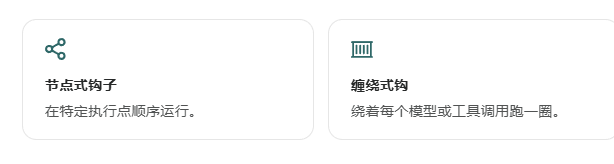 - 想象一下 :智能体原本的执行流程是一条高速公路(A → B → C → D)。**"钩子"**就是在这些路段之间设立的关卡。