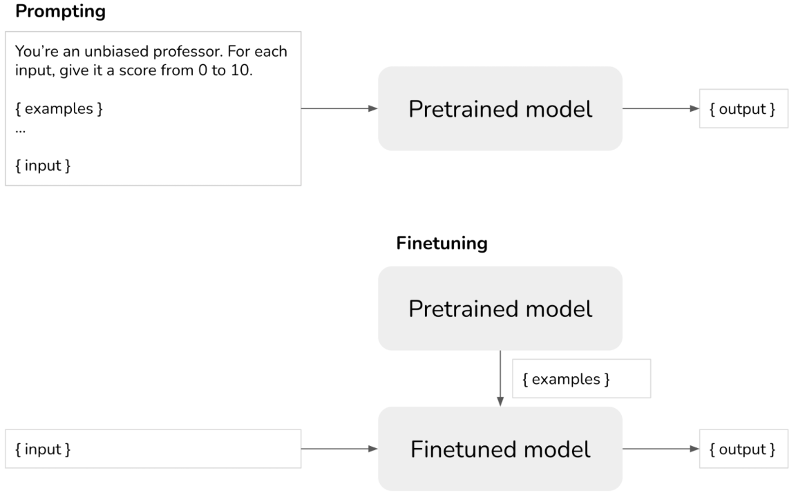 **微调:**训练一个模型来决定如何响应,这样就不必再提示中指定响应方式了