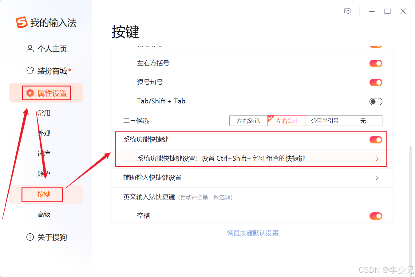 - 找到 "系统功能快捷键" 或 "高级快捷键"