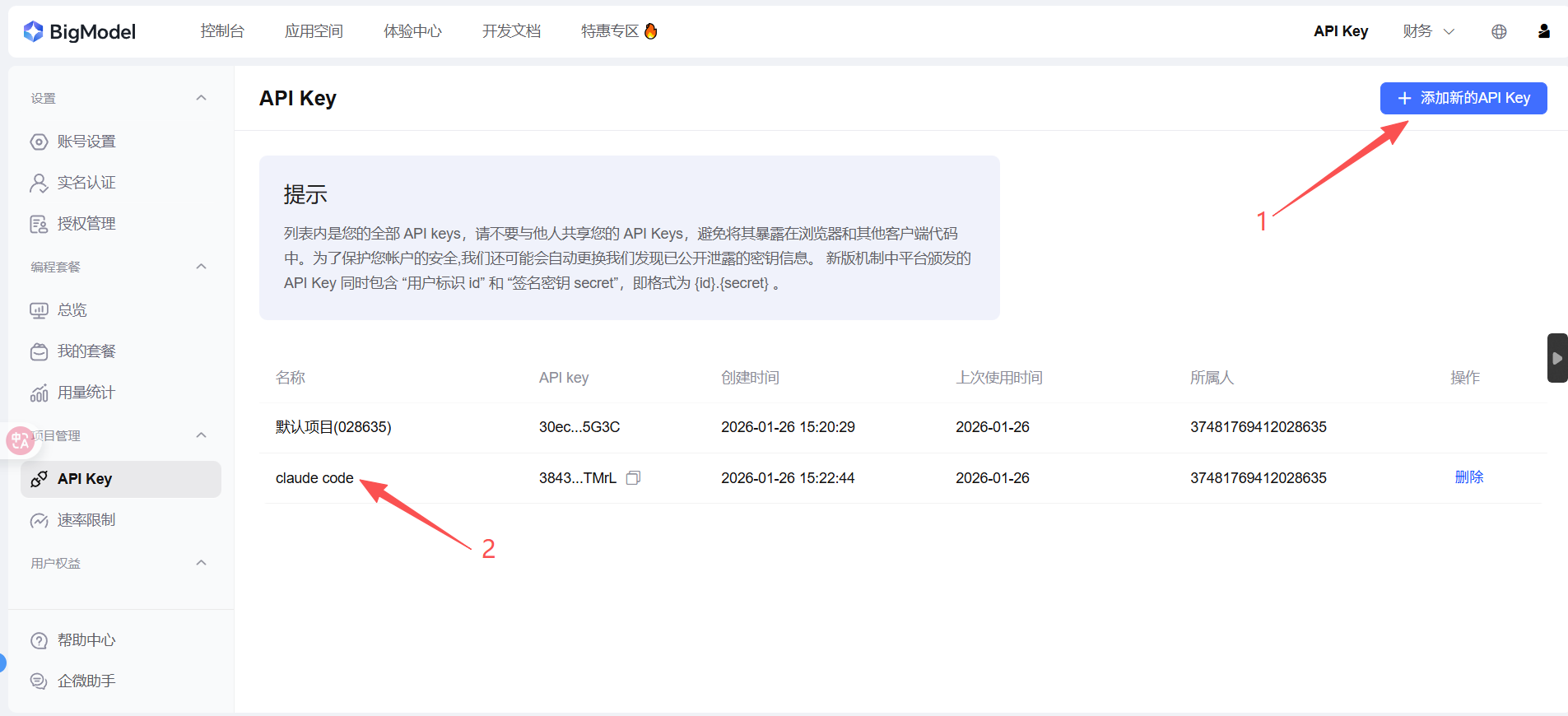 2. 获取API Key