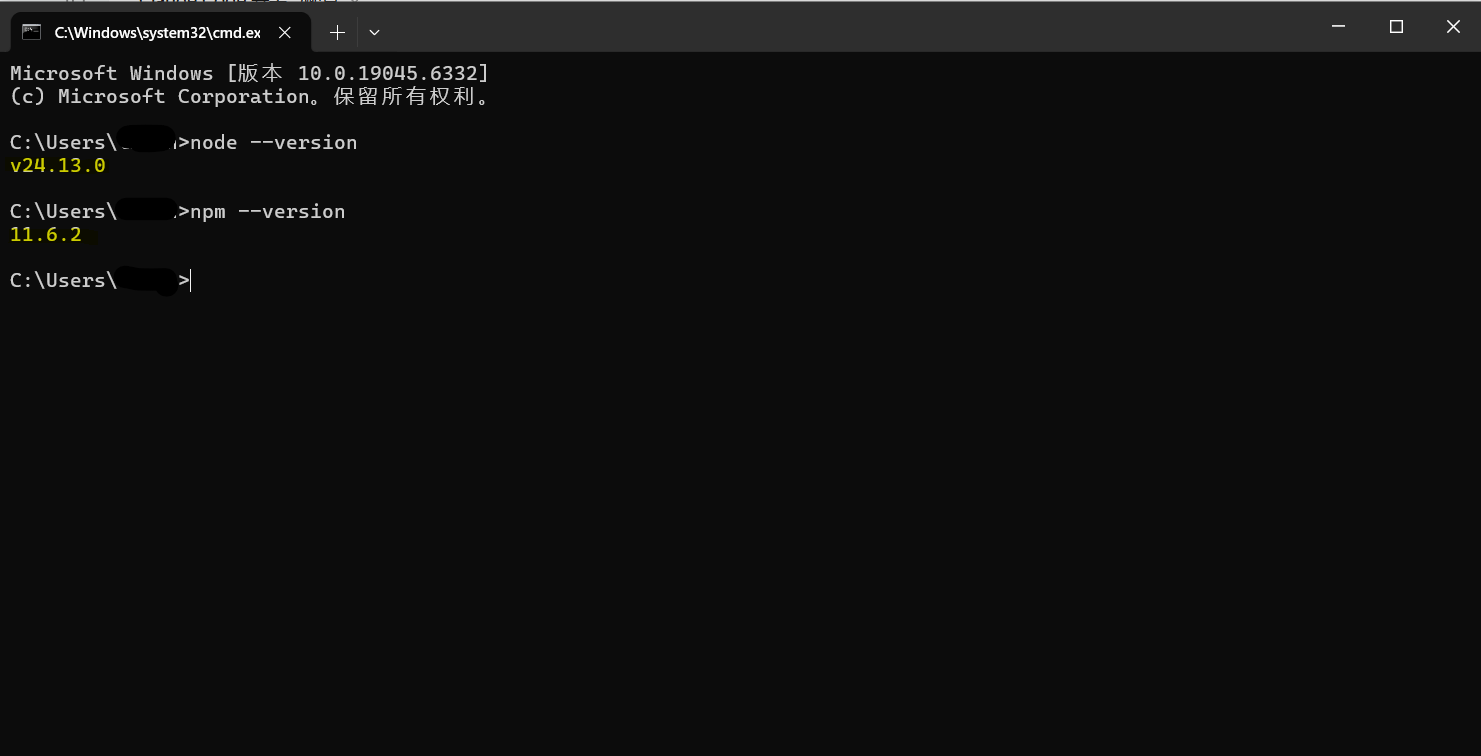 如果显示版本号,说明已安装;如果提示"不是内部命令",则需要安装Node.js。