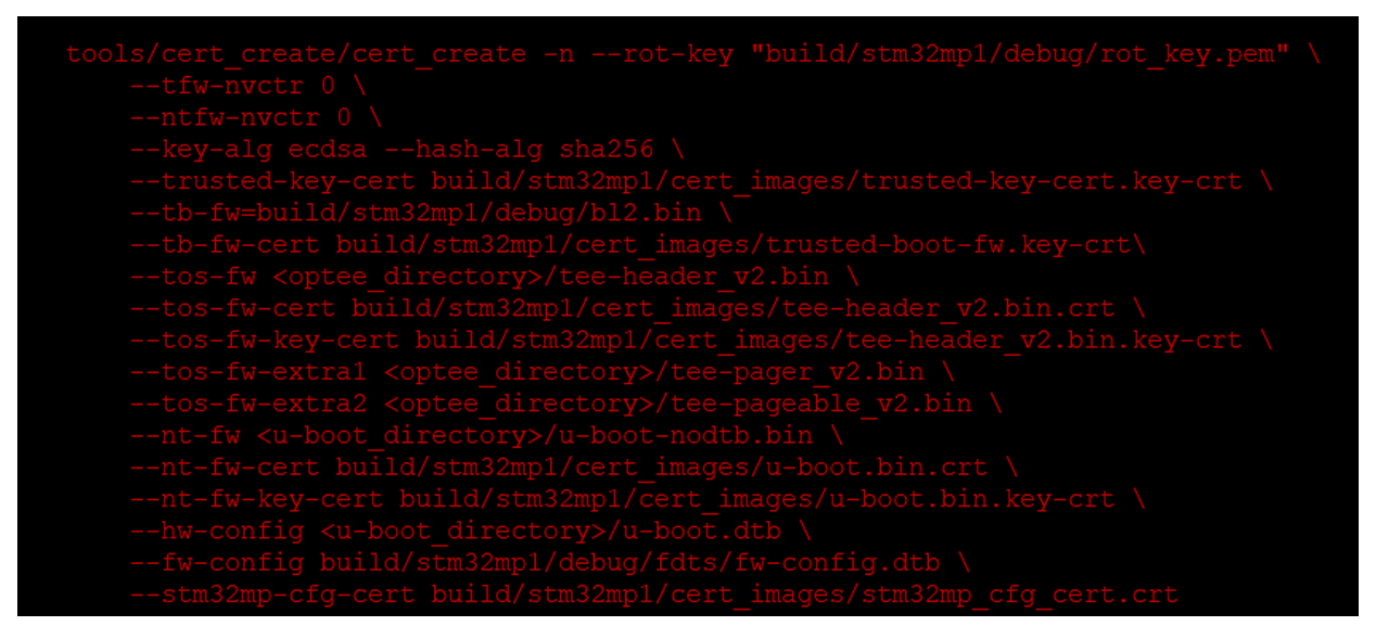 PC \> make OPENSSL_DIR=OECORE_NATIVE_SYSROOT/bin PLAT=stm32mp2 DEBUG=1