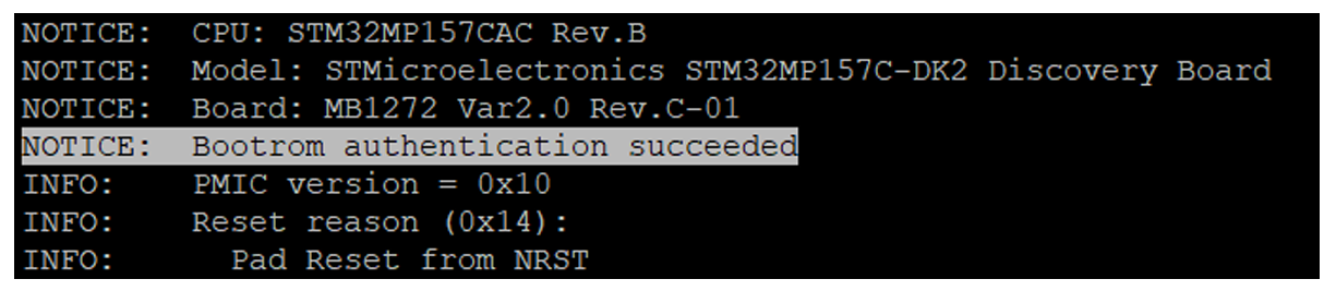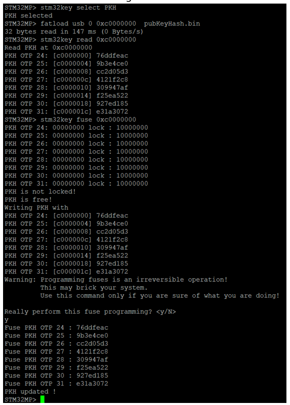PC $ > STM32_SigningTool_CLI -pubk <path to meta-st-stm32mp>key/stm32mp15/publicKey.pem