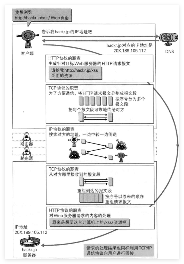 应用层决定了向用户提供应用服务时通信的活动。 TCP/IP协议族内预存了各类通用的应用服务。比如, FTP (File Transfer Protocol, 文件传输协议)和DNS (Domain Name System, 域名系统)服务就是其中两类。 HTTP 协议也处于该层。