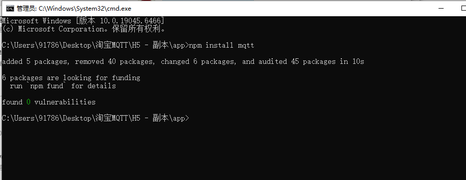 然后点击文件路劲,输入cmd回车,然后写入npm install mqtt进行安装