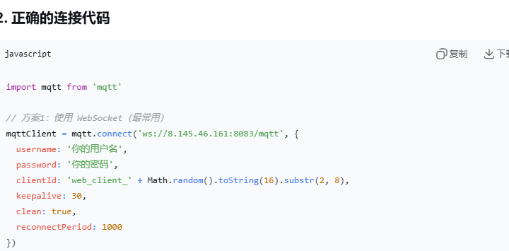 mqtt.connect('ws://8.145.46.161:8083/mqtt', options)